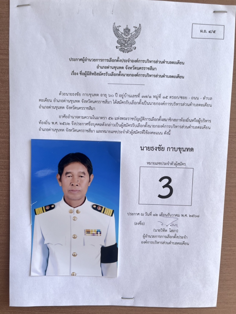 เรื่อง ให้มีการเลือกตั้งนายกองค์การบริหารส่วนตำบลตะเคียน ใหม่ ก่อนการประกาศผลการเลือกตั้ง