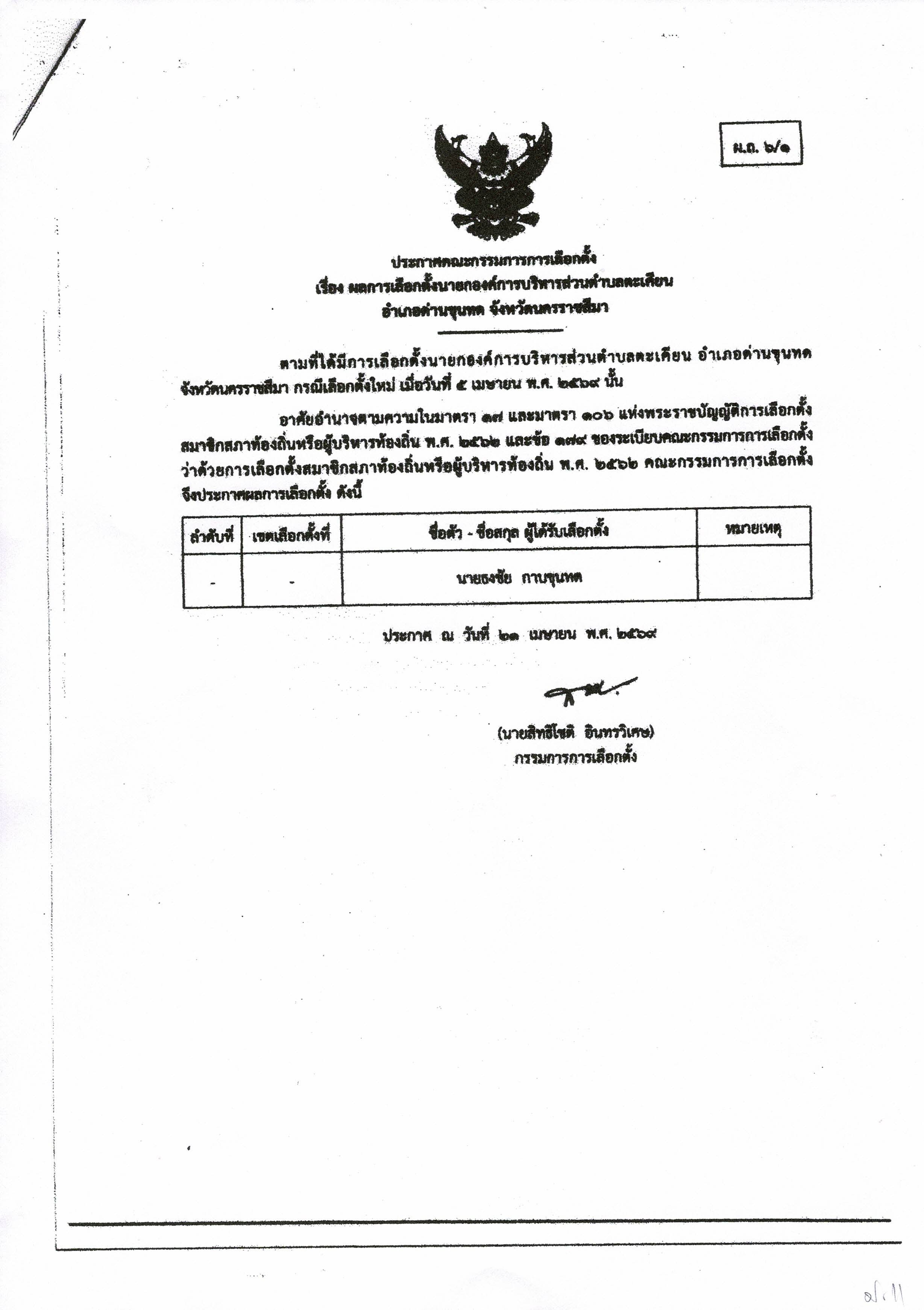 เรื่อง ผลการเลือกตั้งนายกองค์การบริหารส่วนตำบลตะเคียน