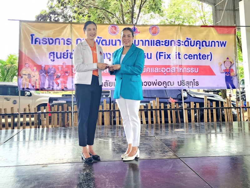 นางพัฒน์นรี แทนขุนทด นายกองค์การบริหารส่วนตำบลตะเคียน ร่วมกับดร.กาญจนา เงื่อนกลาง ผู้อำนวยการวิทยาลัยเทคนิคหลวงพ่อคูณ ปริสุทฺโธ ออกตรวจ ให้กำลังใจ ครูและนักเรียน นักศึกษา ที่ออกให้บริการชุมชน #โครงการบูรณาการการพัฒนาทักษะทางอาชีพกับการเสริมสร้างคุณลักษณะอันพึงประสงค์ของผู้เรียนอาชีวศึกษา (Fix it จิตอาสา) #การพัฒนาส่งเสริมทักษะอาชีพช่างชุมชน ประจำปีงบประมาณ พ.ศ. 2568 โดยให้บริการตรวจซ่อมเครื่องใช้ไฟฟ้า อิเล็กทรอนิกส์ เครื่องยนต์ต่างๆ และกิจกรรมสร้างอาชีพใหม่ ต่อยอดอาชีพเดิมของชุมชน เป็นวันที่ 2 ระหว่างวันที่ 20-21 กันยายน 2568 ณ โรงเรียนบ้านโกรกลึก พื้นที่องค์การบริหารส่วนตำบลตะเคียน ต.ตะเคียน อ.ด่านขุนทด จ.นครราชสีมา
